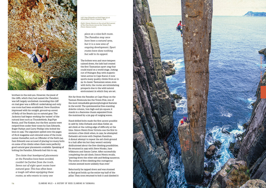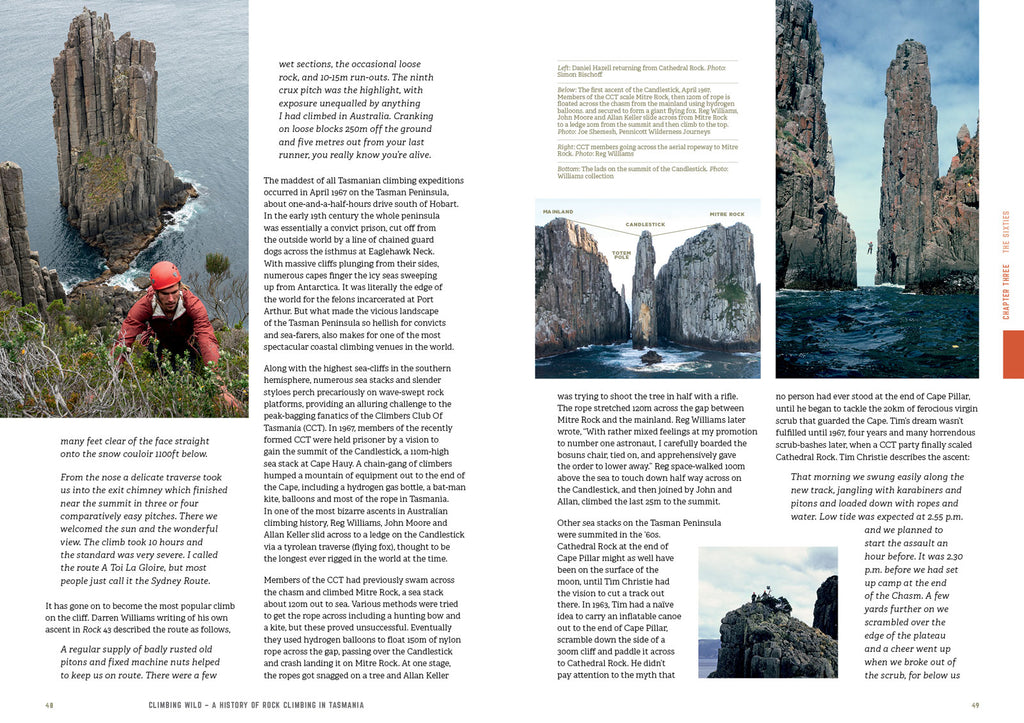 Our dramatic sea cliffs and remote mountains have been the stage for some extraordinary climbs on some of the most improbable rock features in the world. CLIMBING WILD brings to life the history of Tasmanian rock climbing with many  stunning images and tales of adventure.